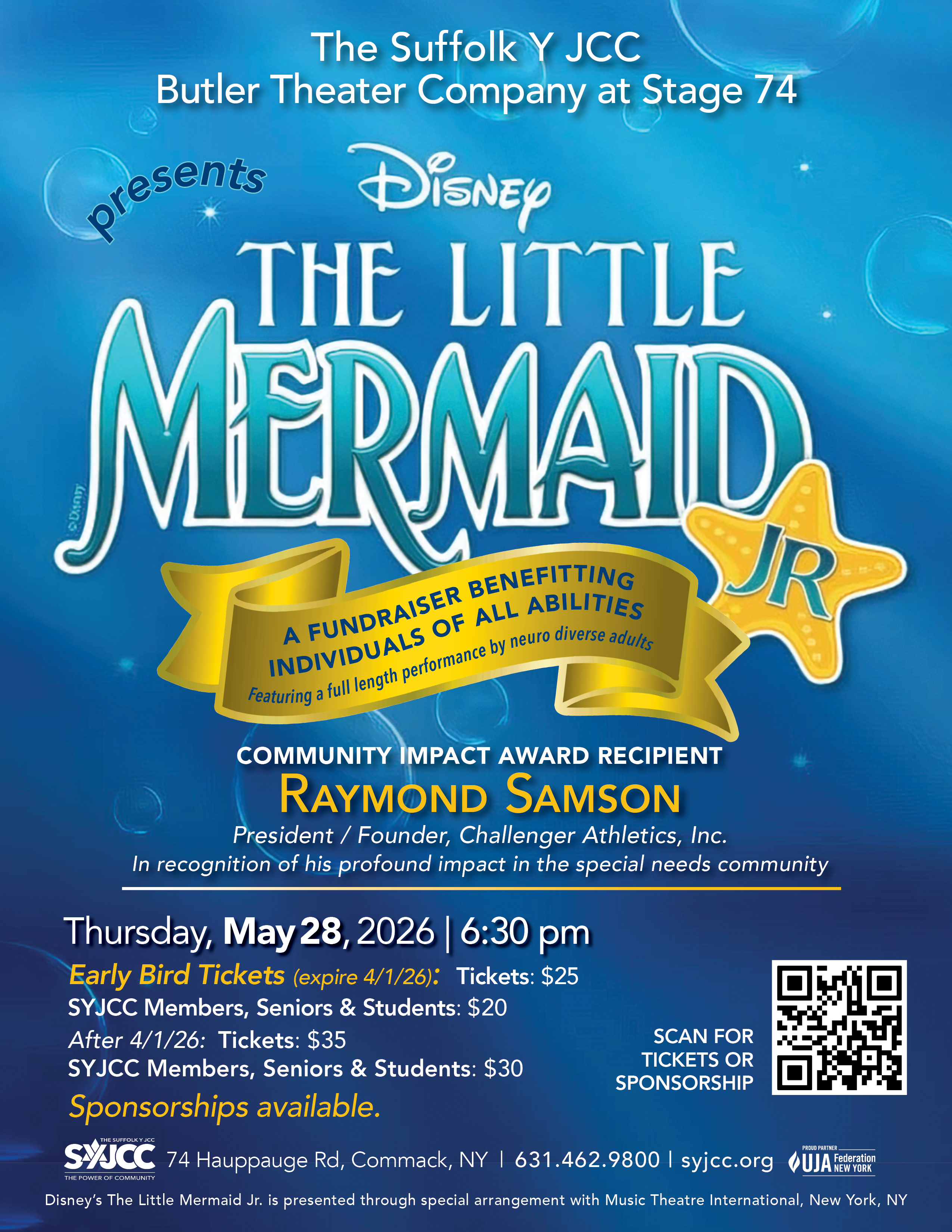 | Cost | Early Bird Price through 4/1/26 Tickets $25 | SYJCC Members/Seniors and Students $20 Regular price begins 4/2/26 Tickets $30 | SYJCC Members/Seniors and Students $25 |