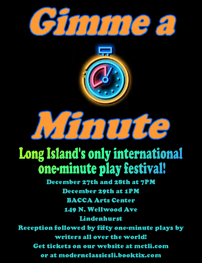 Description | Long Islands only international one minute play festival. This is MCT’s annual fundraiser and includes a reception with wine and appetizers. |