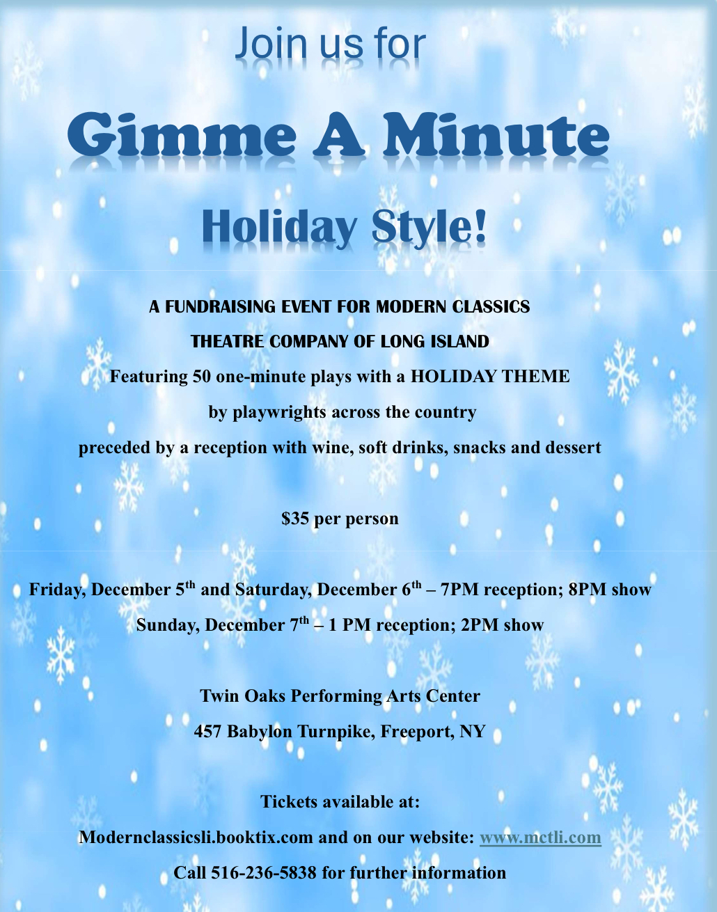 | Show | Gimmee A Minute Holiday Style Fundraising Event for MCT |