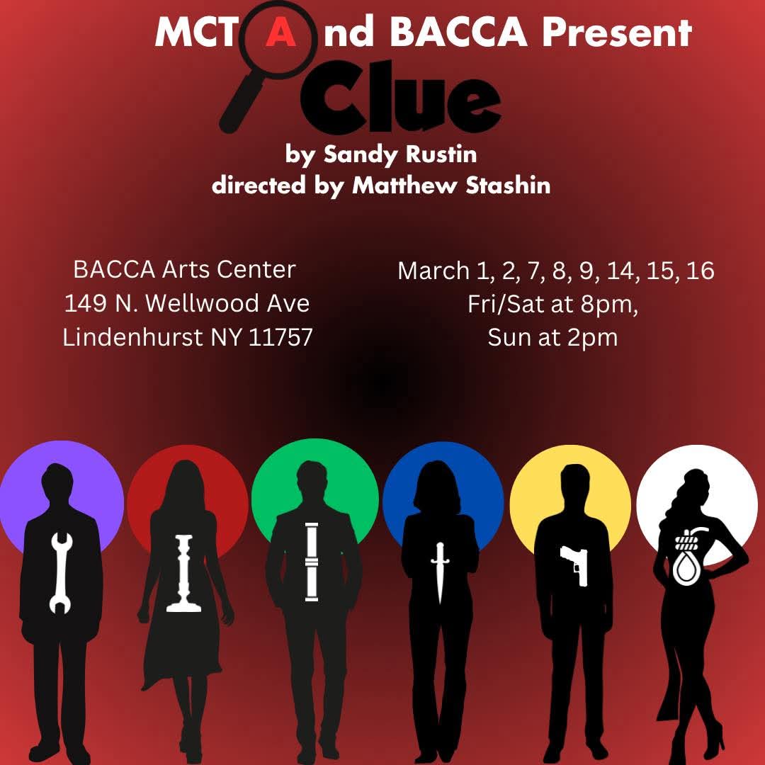 CLUE is a hilarious farce-meets-murder mystery. The tale begins at a remote mansion, where six mysterious guests assemble for an unusual dinner party where murder and blackmail are on the menu. When their host turns up dead, they all become suspects. Led by Wadsworth – the butler - Miss Scarlett, Professor Plum, Mrs. White, Mr. Green, Mrs. Peacock and Colonel Mustard race to find the killer as the body count stacks up. Clue is the comedy whodunit that will leave both cult-fans and newcomers in stitches as they try to figure out … WHO did it, WHERE, and with WHAT!